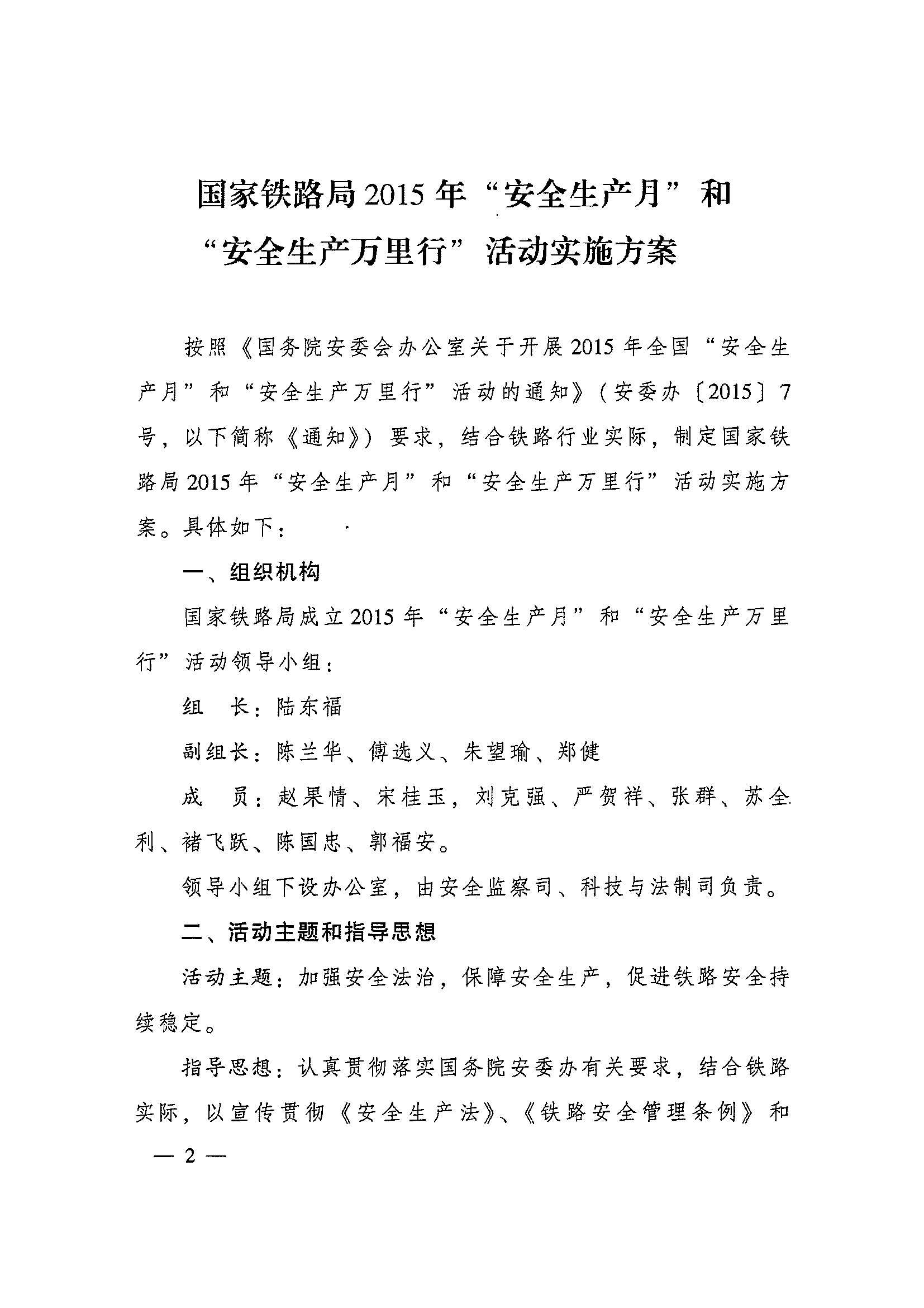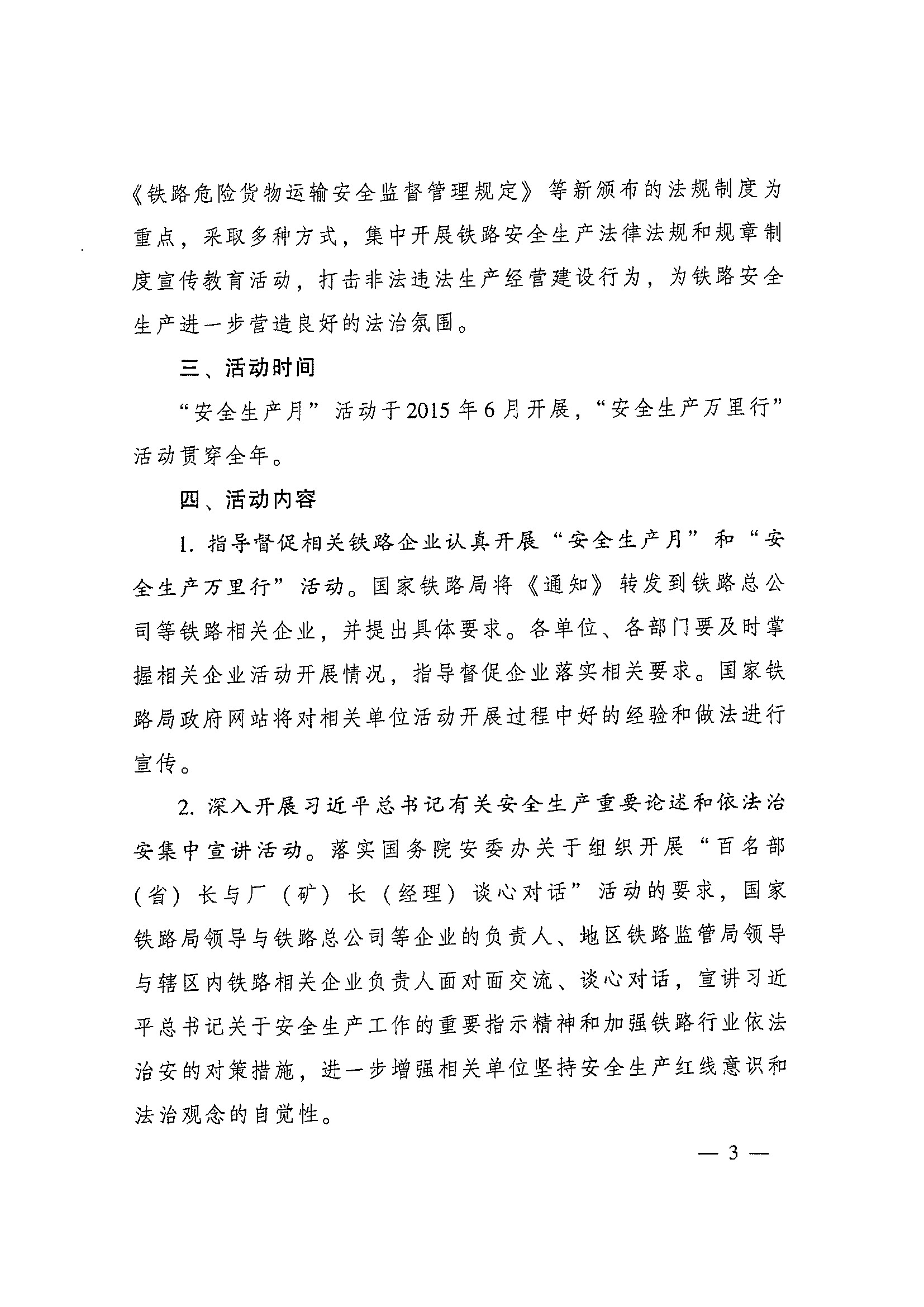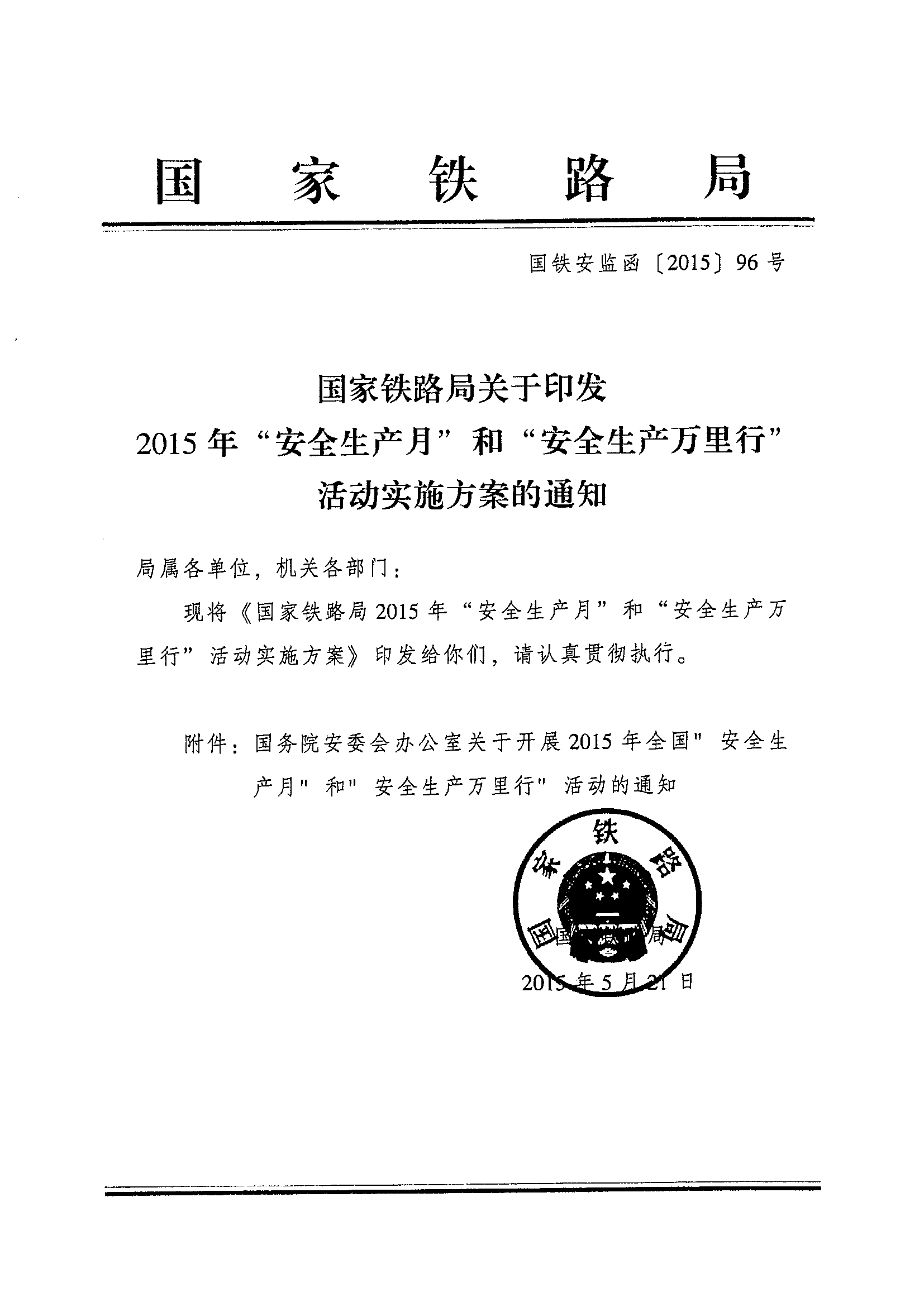 附件:國家鐵路局關于印發2015年“安全生產月”和“安全生產萬里行”活動實施方案的通知。