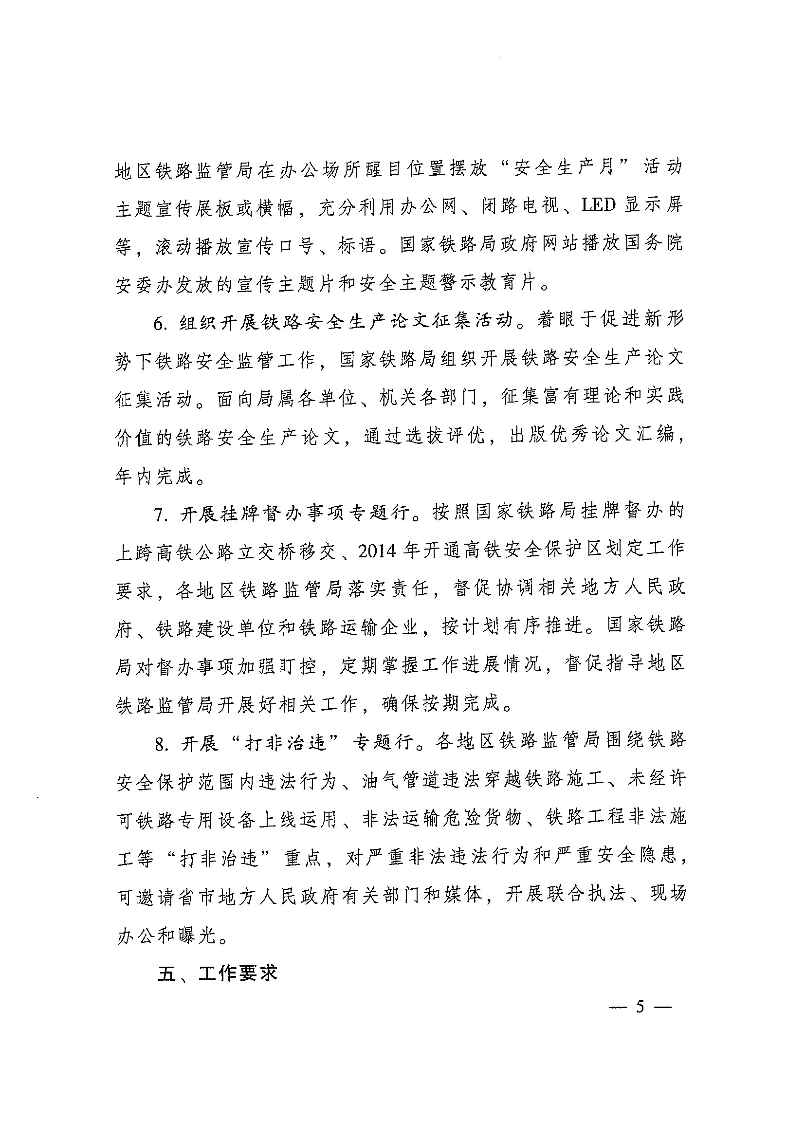 5.組織開展鐵路安全生產論文征集活動。各處室要針對當前安全監管形勢,安排專人撰寫有關安全生產論文,通過選拔評優,上報國家鐵路局。