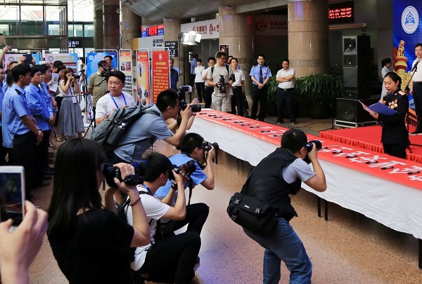本次活動以鐵路安全法律法規(guī)咨詢服務為主要內容,國家鐵路局、北京鐵路局設立咨詢臺,現場對旅客和職工進行鐵路安全法律法規(guī)和客運安全服務質量等咨詢活動。北京鐵路局安全總監(jiān)帶領干部職工集體進行了安全承諾宣誓,站段長代表宣讀了安全生產責任承諾書,北京西站客運服務明星王琳娜向全局鐵路職工發(fā)出了積極參與“安全生產月”活動的倡議。活動期間,向基層單位和旅客贈發(fā)了安全法規(guī)標準、安全知識書籍圖冊等安全文化宣傳品,開展了安全主題大簽名、安全文化宣傳展覽、客運服務質量問卷調查等活動。