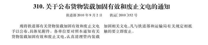 上一篇:《關(guān)于公布鐵路運(yùn)輸裝卸管理有效和廢止文電的通知》