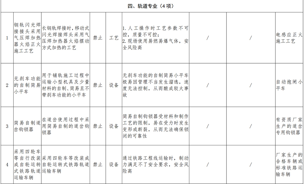 國(guó)家鐵路局關(guān)于發(fā)布《鐵路建設(shè)工程危及生產(chǎn)安全施工工藝、設(shè)備和材料淘汰目錄(第一批)》的公告