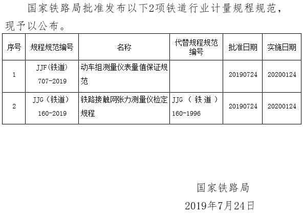 上一篇:國家鐵路局關于發布《鋼軌斷面檢測量具檢定規程》等4項鐵道行業計量規程規范的公告