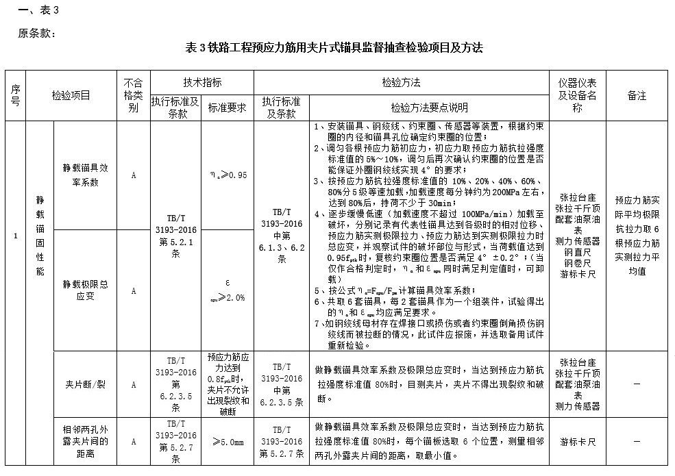《鐵路工程預(yù)應(yīng)力筋用夾片式錨具-鐵路專用產(chǎn)品質(zhì)量監(jiān)督抽查檢驗(yàn)實(shí)施細(xì)則》(GTCC-073-2018)更正內(nèi)容