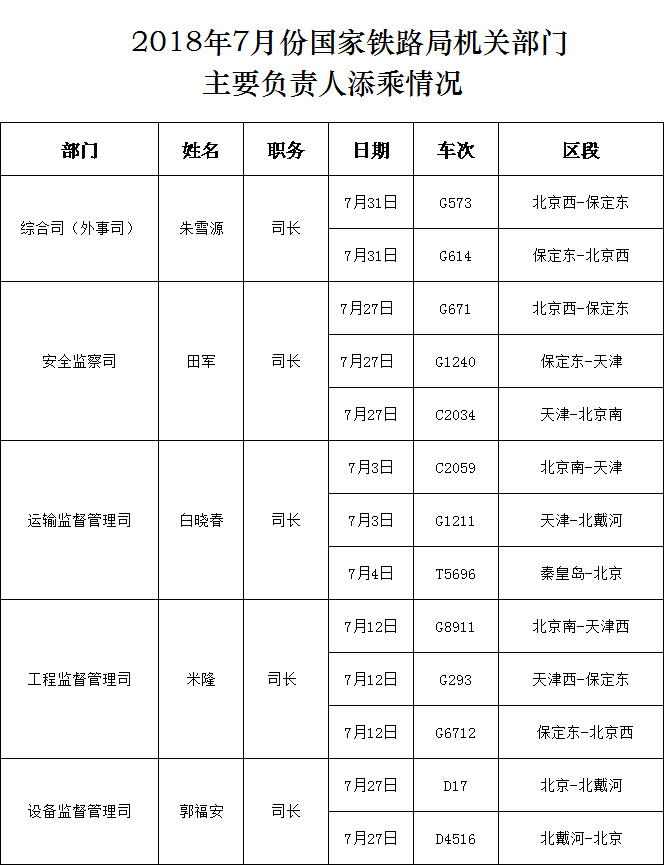 上一篇:2018年7月份國家鐵路局機關部門主要負責人添乘情況