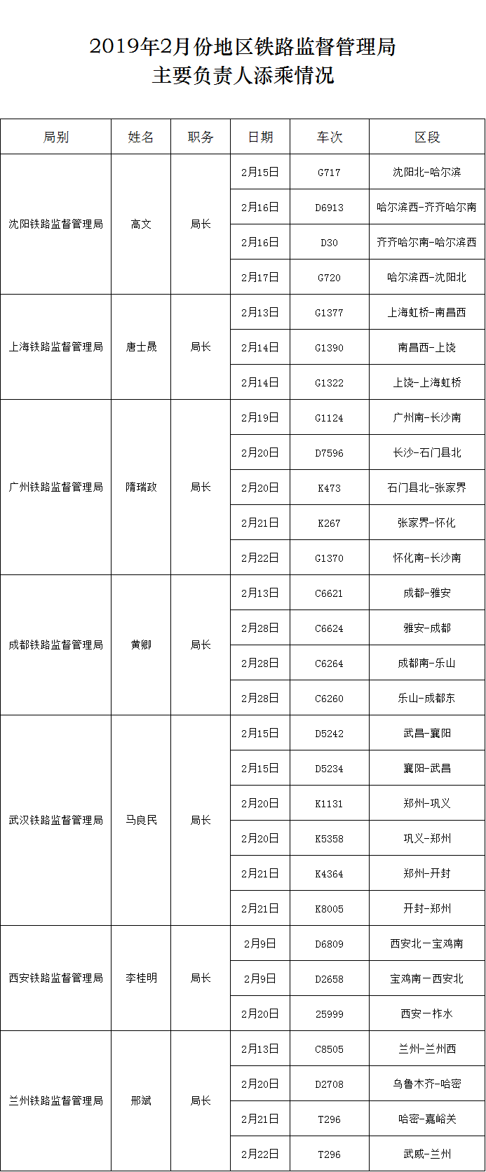 上一篇:2019年2月份地區(qū)鐵路監(jiān)督管理局主要負責人添乘情況