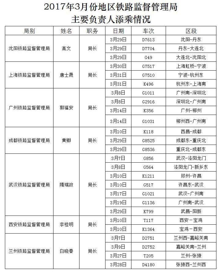 上一篇:2017年3月份國家鐵路局機關各部門主要負責人添乘情況