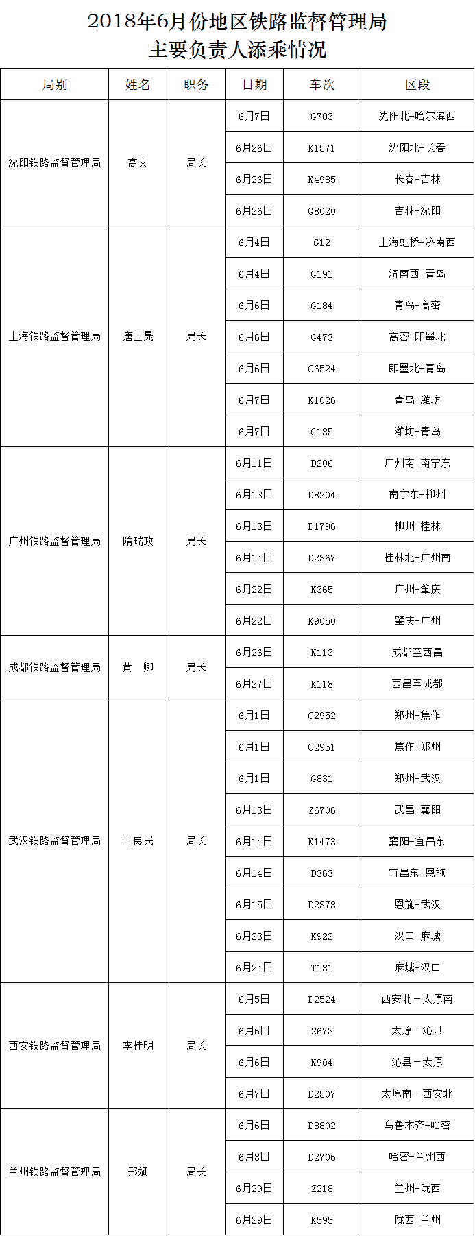 上一篇:2018年6月份國家鐵路局機(jī)關(guān)部門主要負(fù)責(zé)人添乘情況