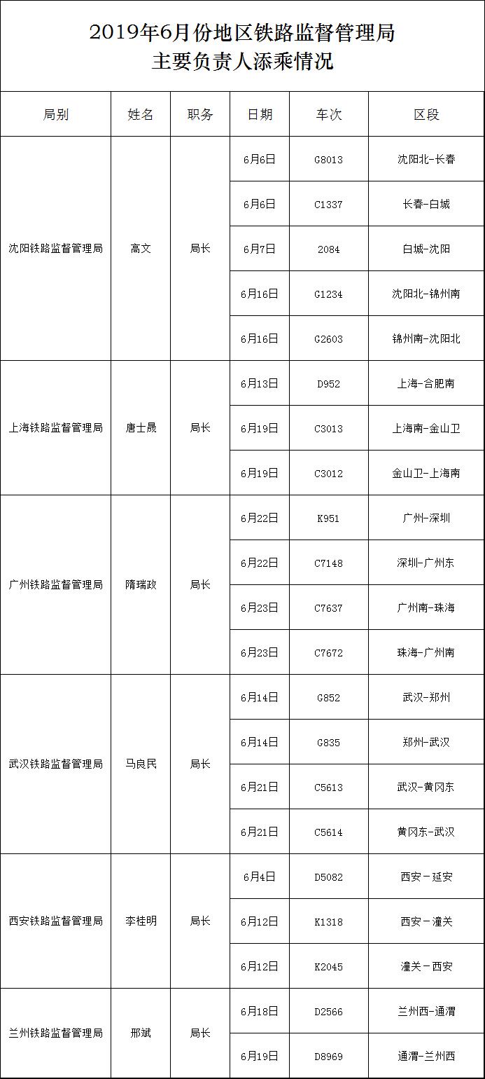 上一篇:2019年6月份地區鐵路監督管理局主要負責人添乘情況