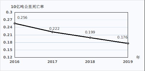 2019年全國鐵路未發(fā)生鐵路交通特別重大、重大事故;發(fā)生較大事故4件,同比增加3件。鐵路交通事故死亡人數788人,同比減少死亡69人,下降8.1%;10億噸公里死亡率[注釋5]0.176,同比下降11.6%。