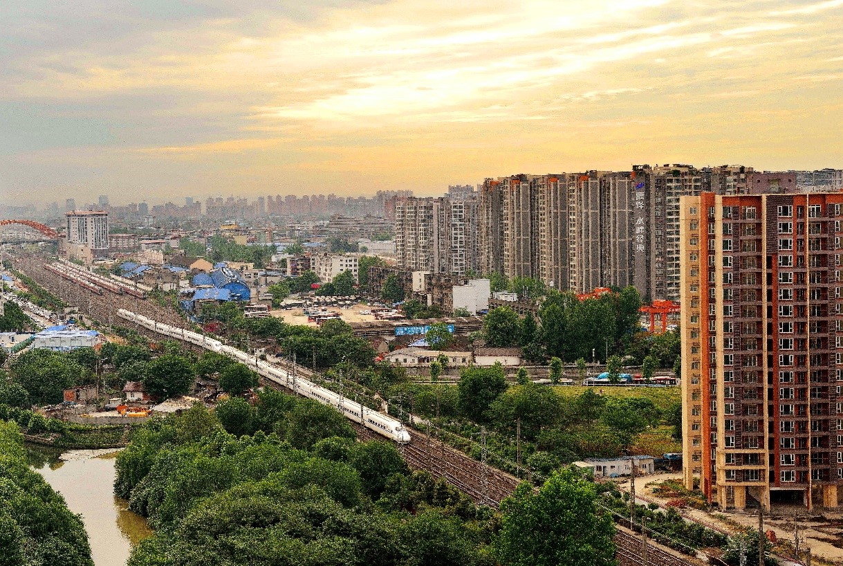 一列“和諧號”動車組在晨曦中駛離成都火車站。張鋼 攝