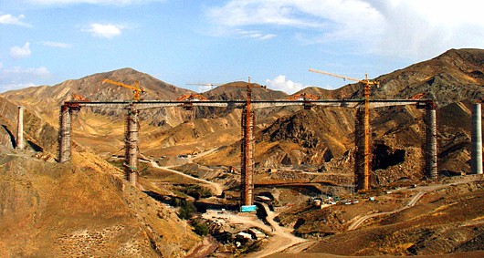 2007年正在施工的精伊霍鐵路克其克蘇布臺(tái)特大橋。