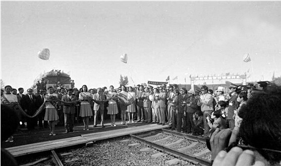 1962年12月9日,蘭新鐵路建成通車(chē),列車(chē)通過(guò)百里風(fēng)區(qū)。