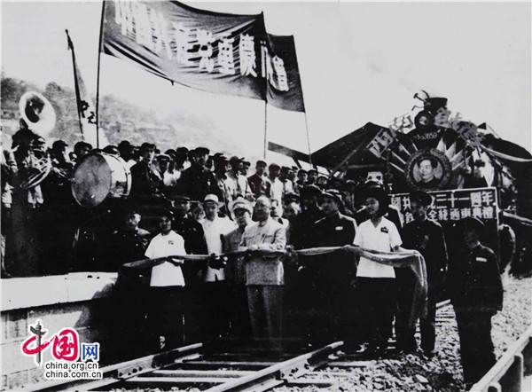 1952年7月,完全由中國自行設計施工,采用國產材料修建的中國西南地區第一條鐵路干線,新中國成立后建成的第一條鐵路,成渝鐵路建成通車。該路全長505公里,西起成都,進入簡陽市,經資陽市、內江市,過永川區,沿長江北岸東到重慶。