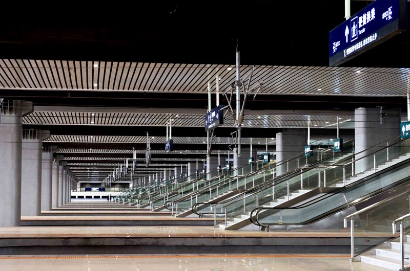 昆明南站建筑主立面由呈扇形盛開的“孔雀羽毛”構成。