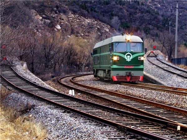 京張鐵路青龍橋車站西上下火車同時開行由南望景