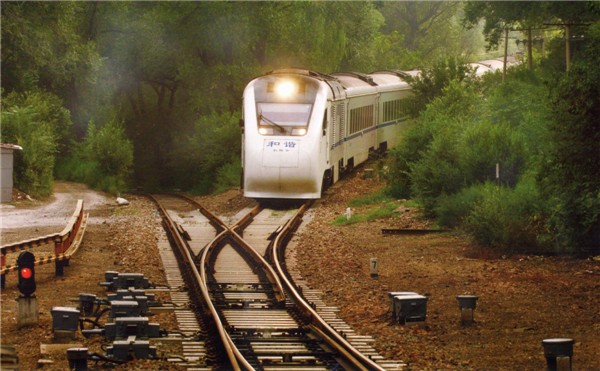 北京市郊鐵路S2線(京張鐵路北京至沙城段)列車行駛在“人”字形鐵路線上