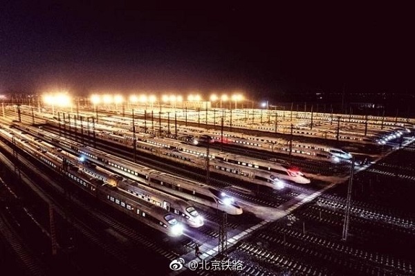 2月1日,春運(yùn)首日凌晨,天津動(dòng)車(chē)運(yùn)用所停車(chē)場(chǎng),數(shù)十組經(jīng)過(guò)動(dòng)車(chē)機(jī)械師們精檢細(xì)修的動(dòng)車(chē)組編隊(duì)集結(jié),只待“沖鋒號(hào)”一響,全速奔向運(yùn)送旅客安全歸家的征途。