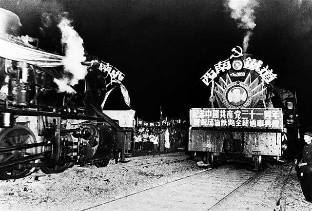 1952年7月1日,成渝鐵路全線通車后,第一列自成都和重慶分別開出的火車在內江車站會車。
