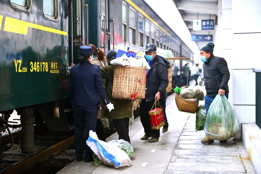 “山里都是寶,就是運出來不方便。”從鳳縣站上車的趙明英,小心翼翼地卸下肩上的背簍。清晨4點收的60斤蘋果、27斤江水菜從齊腰高的麻袋中露出水靈的模樣。“去年疫情發(fā)生后,幸虧‘小慢慢’沒停擺,我們就醫(yī)、買糧、過日子心里才有底。”