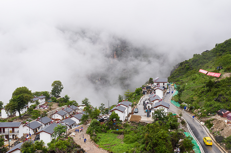 一輛四川鄉村客運面包車行駛在阿布洛哈村新完工的村道上(2020年6月30日攝,無人機照片)。阿布洛哈是全國最后一個不通公路的具備通硬化路條件的建制村。