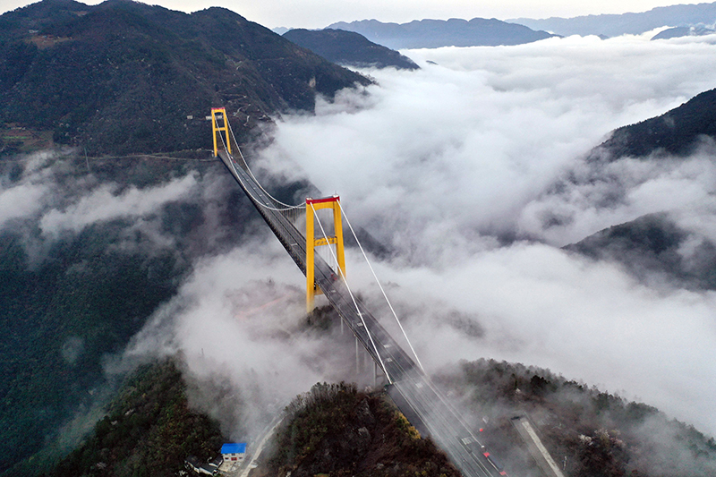 在湖北省恩施土家族苗族自治州拍攝的滬渝高速公路四渡河大橋(2019年3月23日攝,無人機照片)。