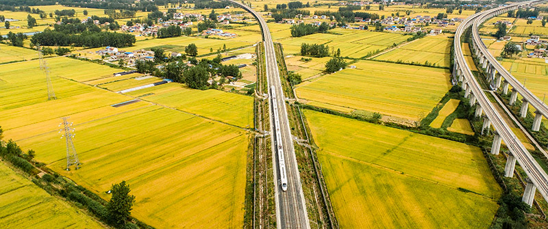 5月26日,一列高鐵列車駛過(guò)江蘇淮安即將豐收的麥田。小滿已過(guò),芒種將至,江蘇省淮安市470余萬(wàn)畝小麥長(zhǎng)勢(shì)良好,即將開(kāi)鐮收割。