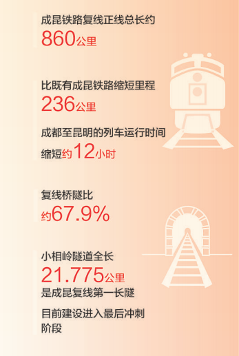 成昆鐵路復線建設完工后,將對實施西部大開發戰略、推動中國—東盟自由貿易區建設發揮重要作用。目前,部分路段已開通運營,為群眾出行提供了便利,促進了沿線經濟社會發展。