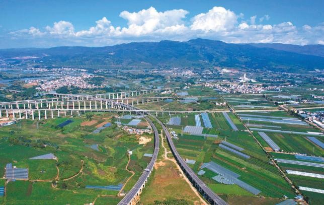 交通是我國現代化的開路先鋒,關系國計民生,服務億萬群眾。十年來,我國綜合立體交通網加速成形,建成世界最大的高速鐵路網、高速公路網等,迎來了由交通大國向交通強國的歷史性跨越。云南省彌勒市不斷推進交通基礎設施建設,形成了較為完善高效的高鐵、高速立體交通運輸體系,助力經濟社會發展,方便當地群眾出行。圖為彌勒市縱橫交錯的交通線路。