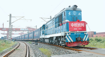 中歐班列是共建“一帶一路”的重要合作紐帶,已通達(dá)歐洲24個國家的196個城市,形成了貫通歐亞大陸的國際貿(mào)易大動脈。截至2022年7月底,中歐班列累計開行5.7萬列,發(fā)送貨物530萬標(biāo)箱。圖為中歐班列(西安)發(fā)往歐洲的列車。