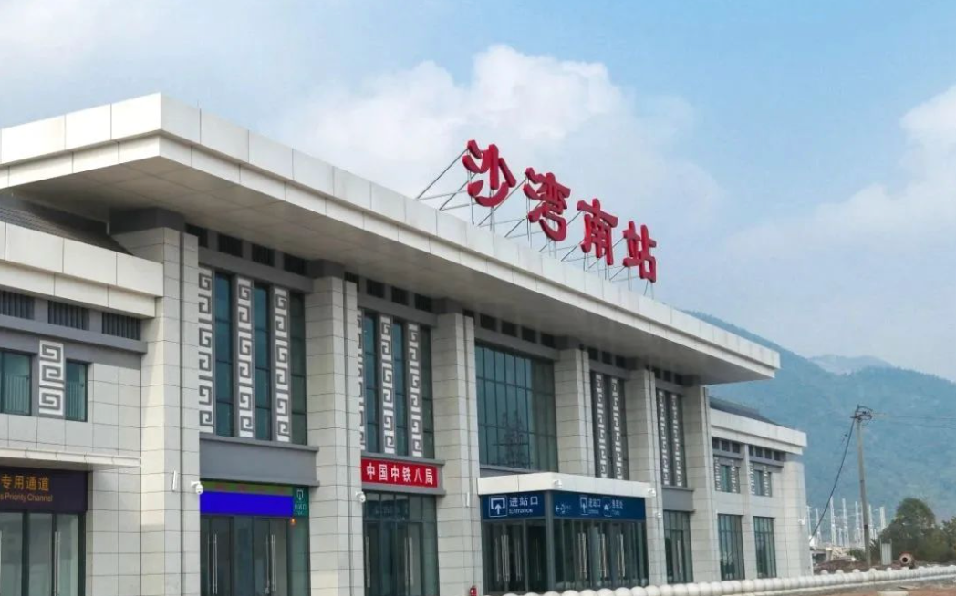 沙灣南站位于四川省樂山市沙灣區(qū)。站房設(shè)計理念源自郭沫若故居,采用斜坡屋頂、小青瓦屋面,鏤空雕花窗與玻璃墻面相得益彰。