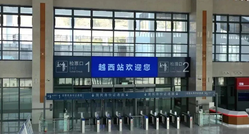越西站位于涼山彝族自治州越西縣哈莫洛村。站房以“南絲古道,好客彝城”為設(shè)計理念,融入越西縣五里牌元素和彝族特色。