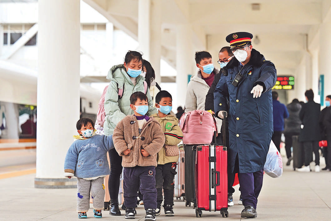 瑞雪兆豐年,啟航新征程。近日,我國部分地區(qū)迎來低溫雨雪天氣,伴隨著節(jié)后“復(fù)工潮”的到來,鐵路部門在應(yīng)對返程客流高峰的同時以雪為令、迅速行動,動態(tài)優(yōu)化客車開行方案,通過開行夜間高鐵列車、動車組重聯(lián)、增開臨客列車等措施,最大限度滿足旅客出行需求;積極開行“點對點”務(wù)工專列,助力務(wù)工人員順利返崗;深入開展志愿服務(wù)活動,情暖旅客返程之路。