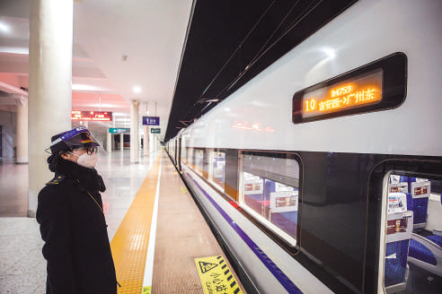 吉安西至廣州東增開D4759次和D4755次兩趟夜間高鐵列車,服務(wù)旅客春節(jié)后返程。鄒陽 攝
