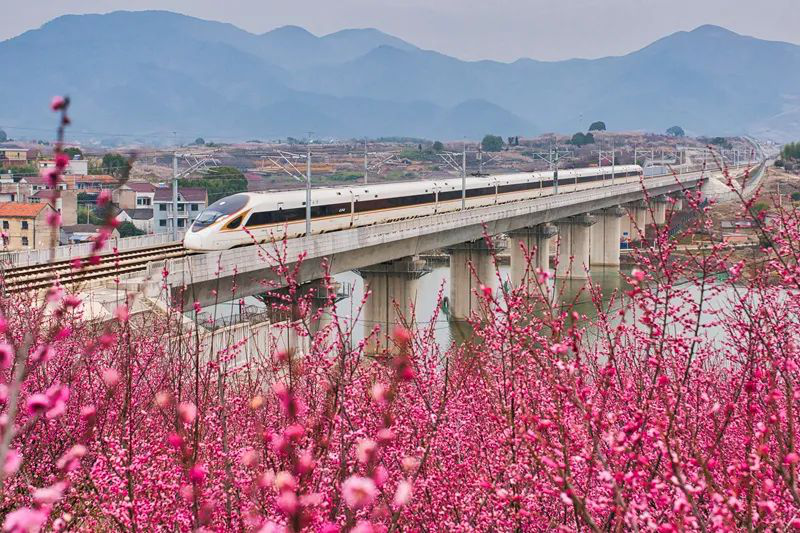 3月以來,中國鐵路南昌局集團公司在宜春、新余、南昌、鷹潭、上饒、婺源、景德鎮等熱門城市間,動態加開了G9823次、G9826/7次、G9828/5次、G9824次等多趟列車,高鐵穿越花海,方便游客賞花閱景。