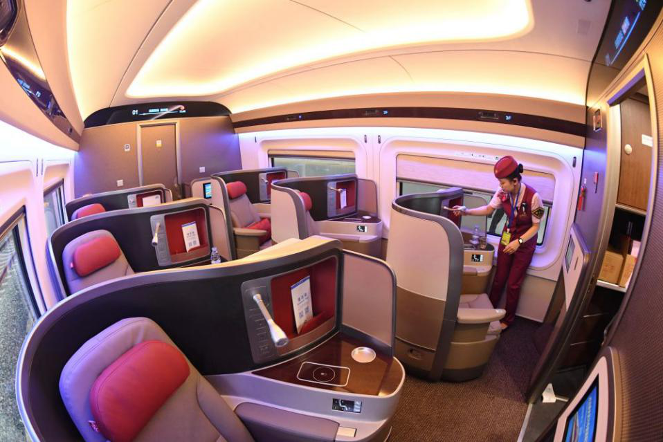 “復興號”智能動車組商務(wù)座內(nèi)飾。