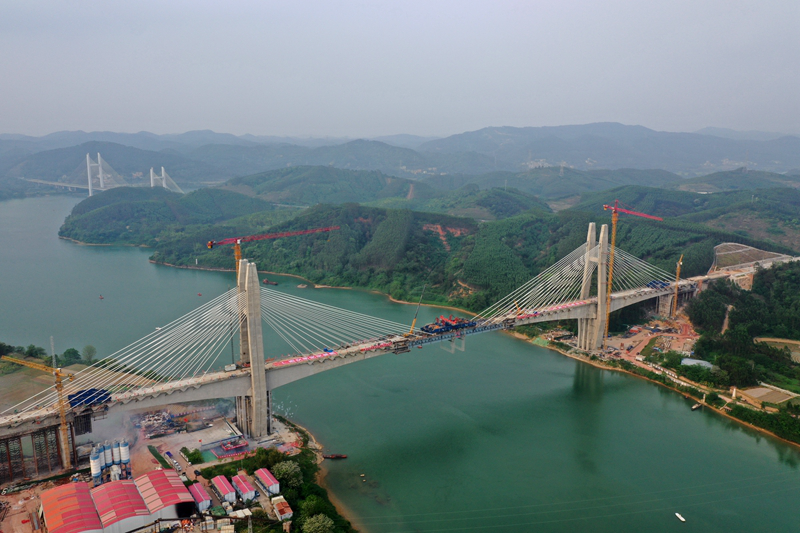 今年以來,各地鐵路建設加速推進,路網規模質量進一步提升。日前,南深高鐵南玉段六律邕江特大橋主橋順利合龍,至此,南深高鐵南玉段全線橋隧工程順利貫通,為項目建成通車奠定基礎。