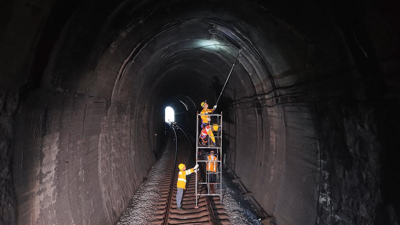暑運(yùn)期間,在湘桂鐵路(廣西段)沿線,國鐵南寧局桂林工務(wù)段13名橋隧工人日夜穿梭于桂北的崇山峻嶺間,對(duì)管段內(nèi)的10座隧道、1075座涵洞進(jìn)行多維度巡檢、排查隱患,確保湘桂鐵路線上暑運(yùn)客貨列車安全運(yùn)行。
