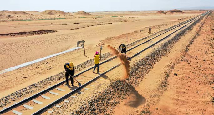 大漠鐵路治沙工