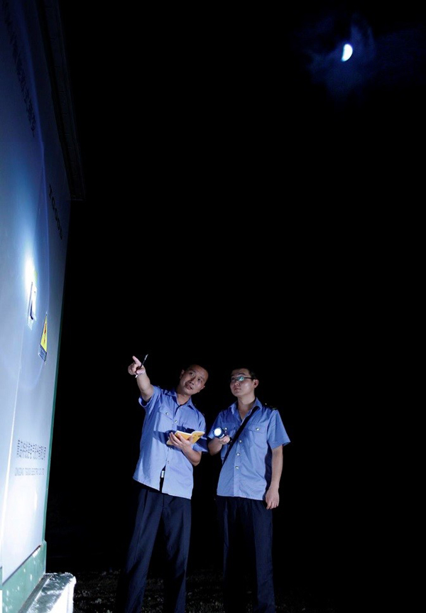 月夜,值班人員檢查站內(nèi)設(shè)備。