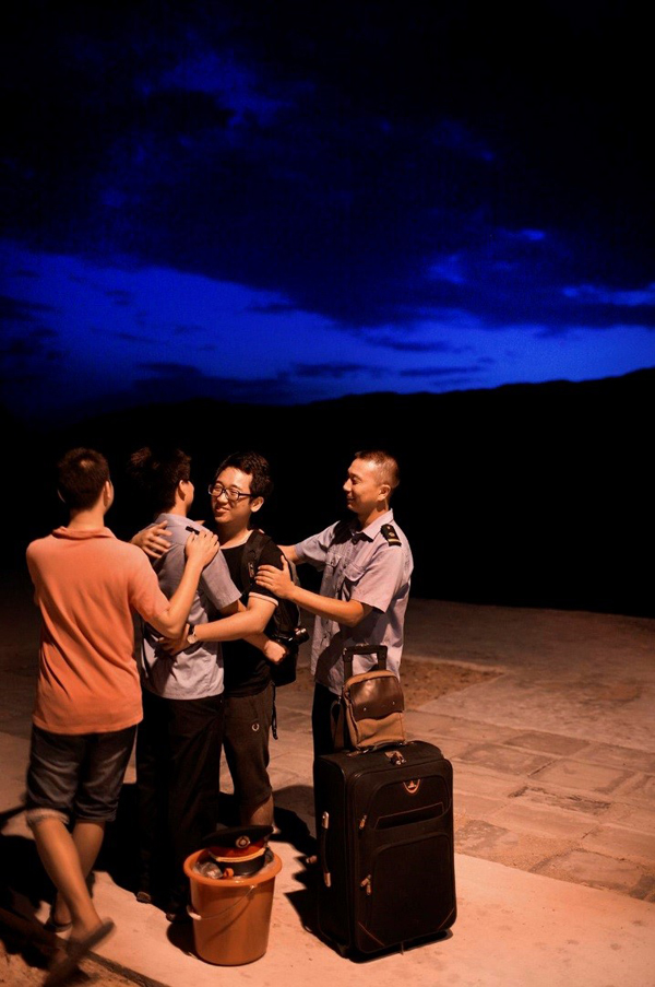 助理值班員林希調(diào)往相鄰的將樂站,夜幕中與兄弟們告別。
