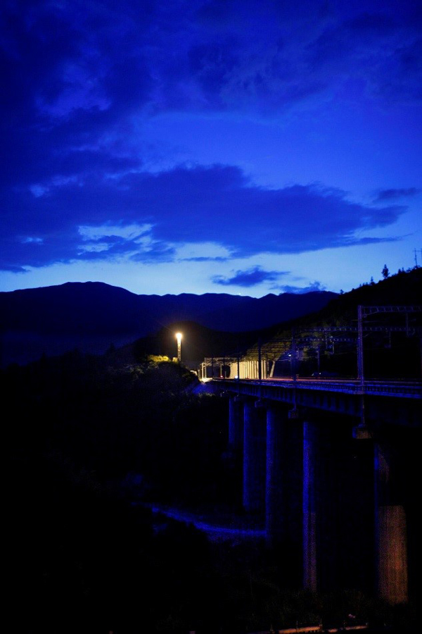 近十天的采訪結(jié)束,記者離開時回頭遠眺,夜幕中橋那邊的小站依然寧靜。