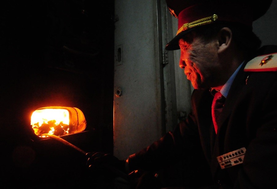 “讓旅客上了車,就像回家上了炕?!边@趟車的乘務員總結了一套“勤填煤、勤檢查水位、勤清理火床、勤保證循環”的“四勤”鍋爐焚火法。乘務員添完煤,又向爐子下方的槽里加了水,等到鍋爐溫度接近90度之際就熟練地操控著循環桿,將熱量傳遞到車廂內。趕上電泵超負荷不能使用,乘務員就手動壓泵循環,一晚上不斷重復加煤、清灰、循環的工作,值一個班下來累得腰都直不起來。