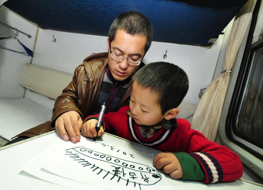一名小旅客畫出“齊古慢”列車,準備送給列車長。