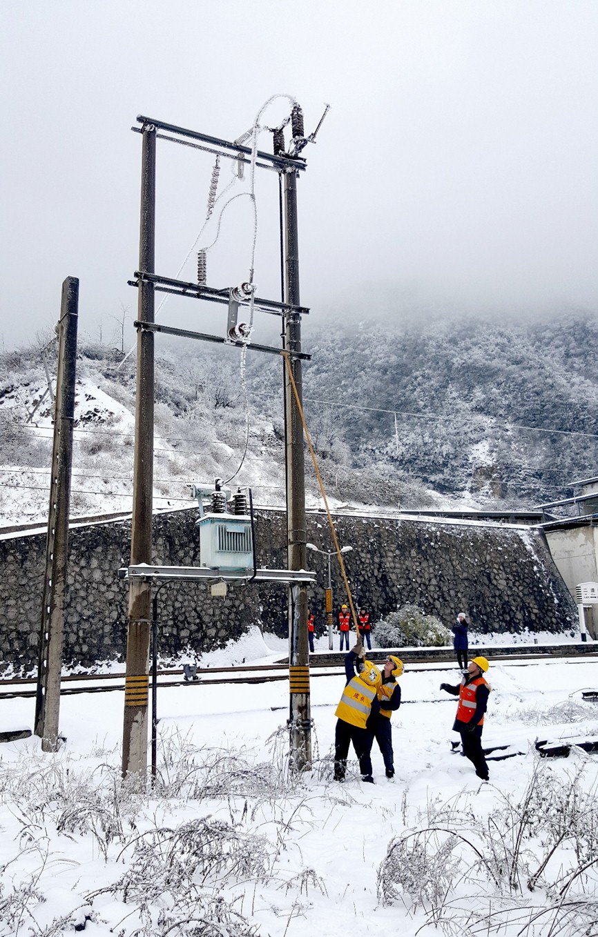 成都鐵路局成都供電段職工正在內昆鐵路彝良至昭通北區間二道橋車站進行打冰作業。胡志強 攝