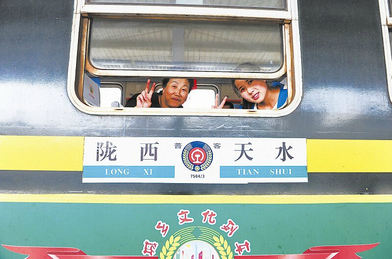 “城鄉文化列車”編掛8輛硬座車,采用22型車體。其中7503次列車15時34分從天水站開出,18時21分到隴西站;7504次列車6時30分從隴西站開出,9時49分到天水站。這趟天蘭線上的“小慢車”安全快捷、價格便宜、服務周到,已成為穿越隴東山區的“民生列車”。