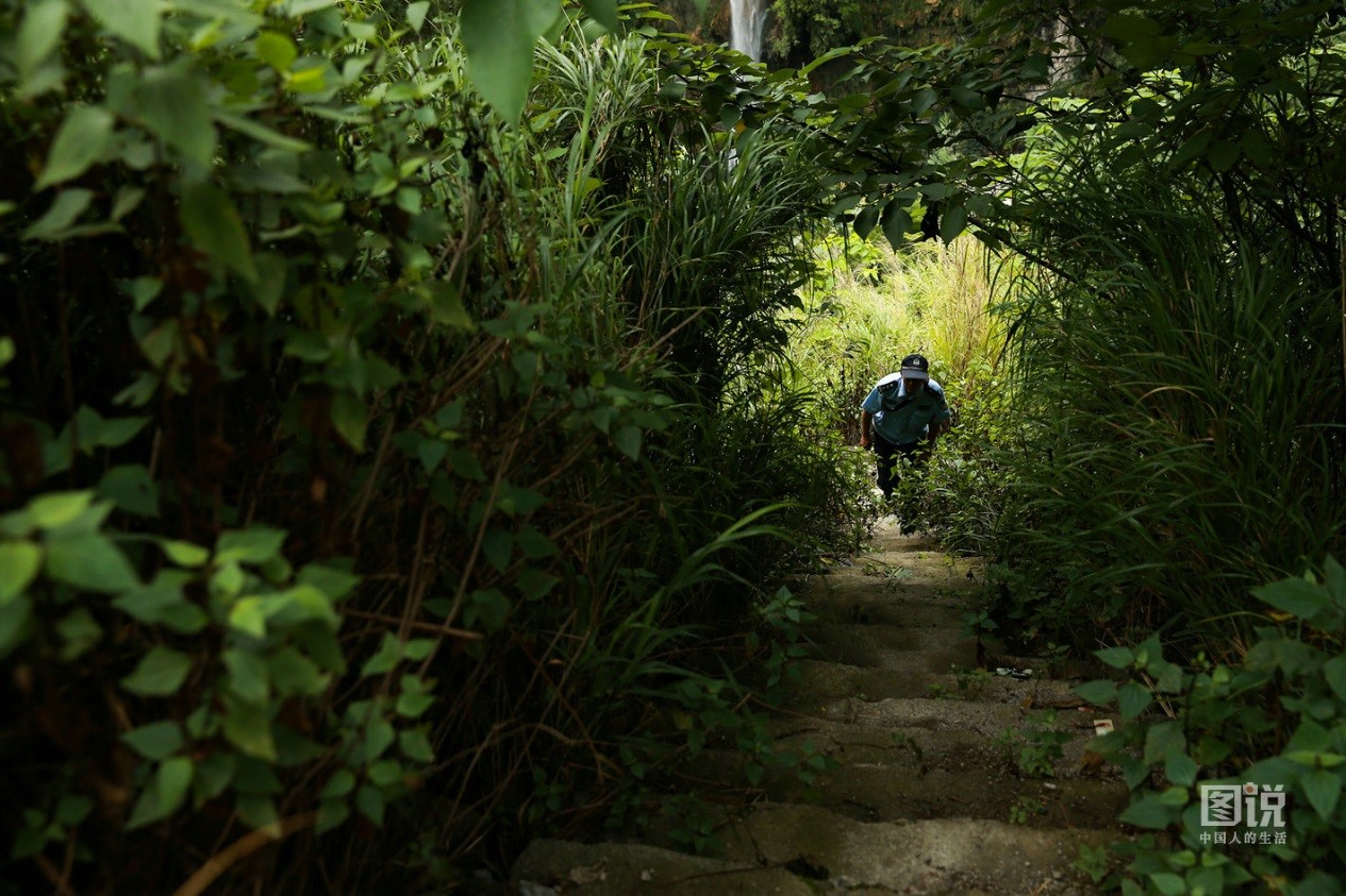 楊福明已經半年沒有回家了,今年7月,他的老伴兒帶著外孫從貴陽過來看他。老伴兒說:“這地方太偏僻了,買個菜要跑很遠,老楊都是一次買夠吃一周的菜。常年駐守山旮旯里,哎!確實蠻辛苦的!”