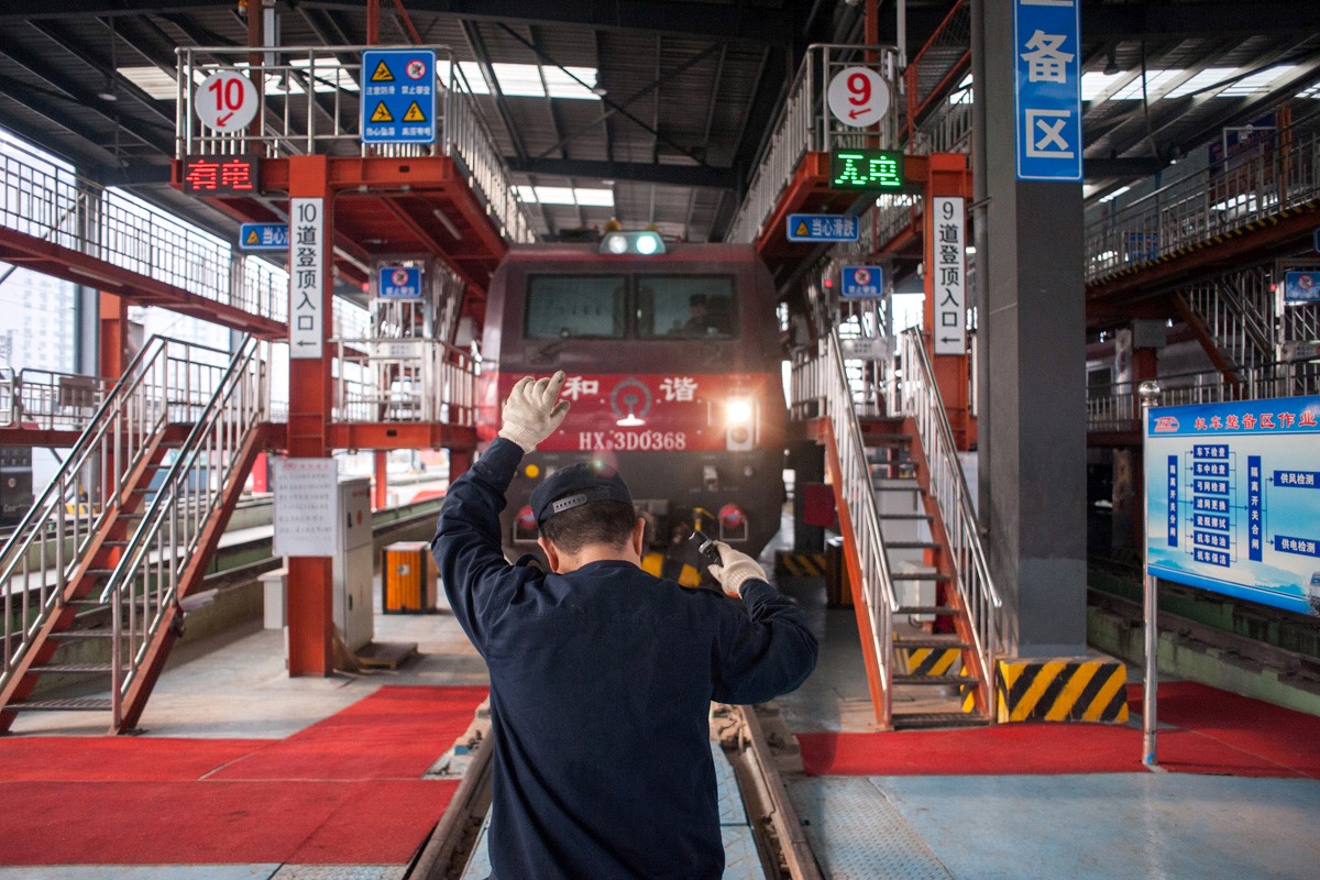 北京機務(wù)段是新中國成立以來全國第一個機務(wù)段,隨著城市化的不斷發(fā)展和北京首都的新定位,機務(wù)段已經(jīng)和北京市融為一體,停放在場站內(nèi)的和諧號機車和周圍生長的高樓形成對比。