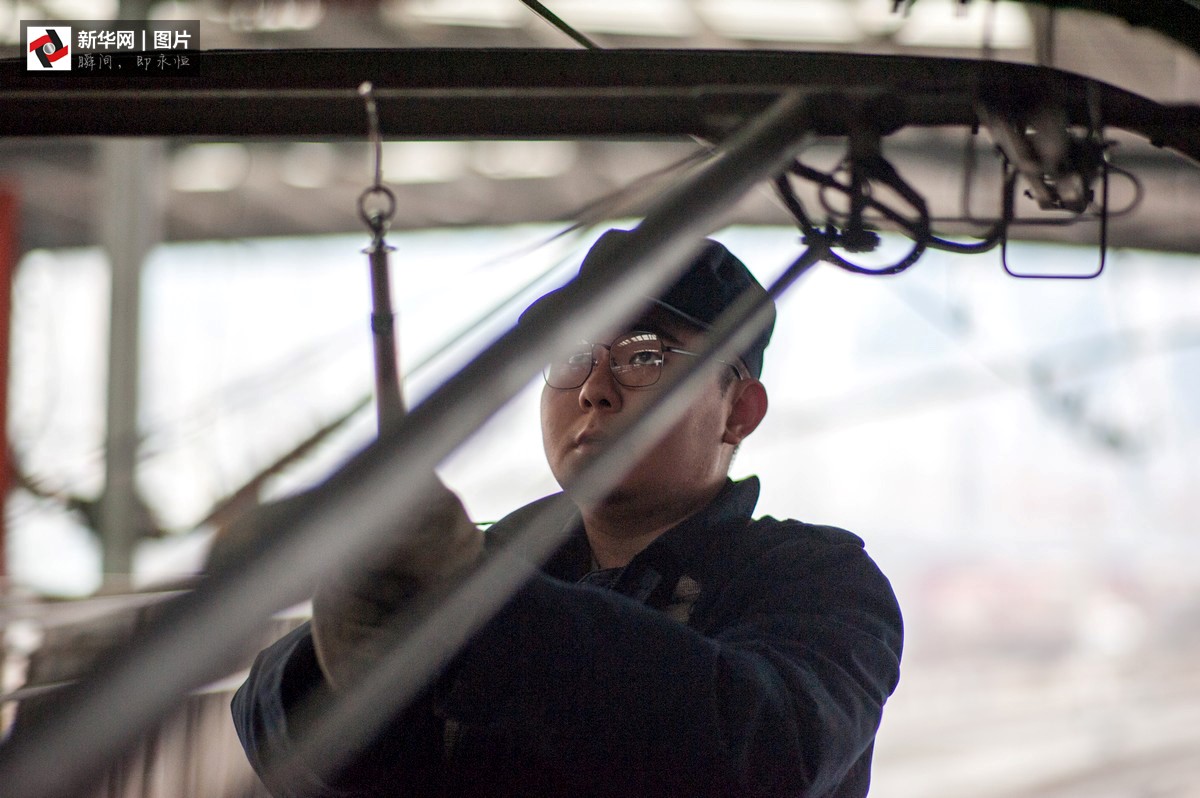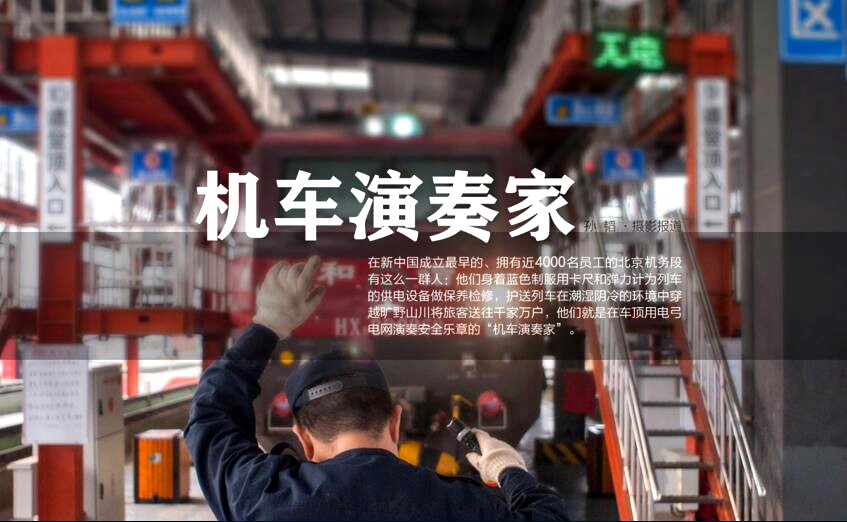 在新中國成立最早的、擁有近4000名員工的北京機務(wù)段有這么一群人:他們身著藍色制服用卡尺和彈力計為列車的供電設(shè)備做保養(yǎng)檢修,護送列車在潮濕陰冷的環(huán)境中穿越曠野山川將旅客送往千家萬戶,他們就是在車頂用電弓電網(wǎng)演奏安全樂章的“機車演奏家”。