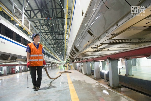 高鐵“吸污人”中流行一句話:用一人臟換得千人凈。每天夜里冷玉明至少要處理8.5噸高鐵污水糞便,節假日迎出行高峰,高鐵動車滿座,清污工作也愈發艱巨。