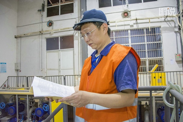 按照作業要求,冷玉明先到吸污泵房,仔細查看吸污設備檢修記錄情況。
